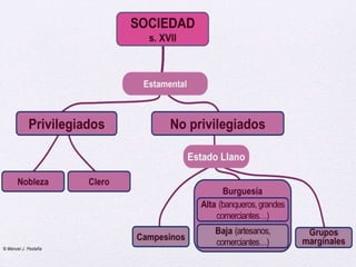 La economía europea sufrió una crisis en el siglo XVII debido a malas cosechas que provocaron escasez de alimentos y aumento de precios. Esto afectó negativamente a la industria, el comercio y la población, que dejó de crecer e incluso disminuyó. Los grupos más pobres se vieron especialmente afectados por el hambre y las enfermedades. La alta burguesía ganó más influencia prestándole dinero a los estados.