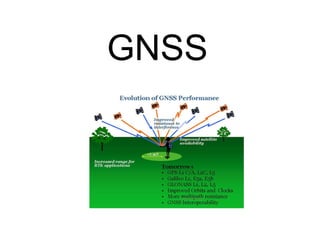 Este documento describe dos sistemas de medición topográfica: los sistemas de navegación global por satélite (GNSS) como el GPS, y las estaciones totales. Los GNSS calculan la posición mediante la triangulación de cuatro o más satélites, y ofrecen precisión de hasta 1 milímetro. Las estaciones totales combinan un teodolito, distanciómetro y microprocesador para medir coordenadas 3D con precisión de 2-3 milímetros. Ambos sistemas son resistentes a condiciones adversas y cada vez más