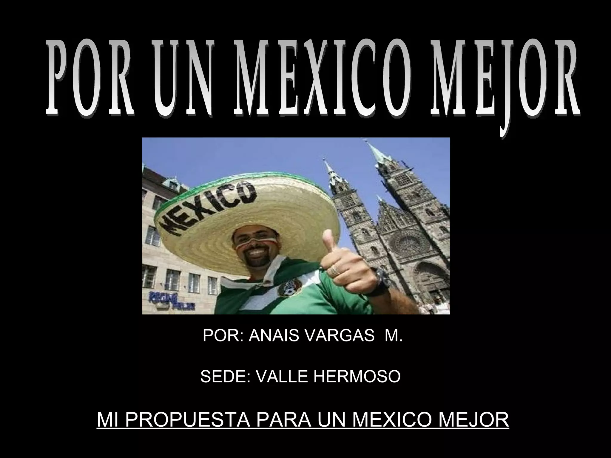La autora propone formas de mejorar México reduciendo la delincuencia y la contaminación, así como promoviendo la tolerancia, los valores ciudadanos y el fin de la corrupción. Plantea que si los ciudadanos se mantienen firmes en sus principios y se ayudan unos a otros en buenos y malos momentos, esto podría contribuir a un México mejor.