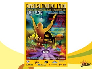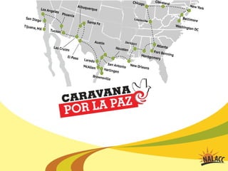 El documento describe las actividades y proyectos de NALACC en 2012, incluyendo jornadas de juventud, un instituto de liderazgo, delegaciones transnacionales, actividades locales, una caravana por la paz en Centroamérica y México, presencia en foros globales, y participación en eventos en varias ciudades de Estados Unidos.