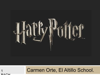 El documento presenta información sobre la autora J.K. Rowling y sobre personajes, lugares y fechas clave de la serie de libros Harry Potter. Se proporcionan detalles biográficos de personajes principales como Harry Potter, Hermione Granger, Ron Weasley y Lord Voldemort, así como de lugares importantes como Hogwarts y el Callejón Diagón. También se resumen las dos guerras mágicas entre Voldemort y la comunidad mágica y se incluyen preguntas de un test sobre datos de la serie.