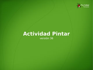 Este documento describe la aplicación "Actividad Pintar", la cual permite dibujar, editar imágenes, agregar texto y efectos. La aplicación tiene pestañas para la actividad, edición, formas, texto e imágenes, con herramientas como pincel, borrador y balde. Los archivos se guardan por defecto en formato PNG y permiten funciones como deshacer, copiar, pegar, ajustar propiedades y agregar efectos.