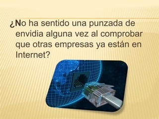 Este documento ofrece consejos para que las empresas establezcan una presencia en Internet. Primero, las empresas deben elaborar un plan estratégico para determinar cómo aprovechar las ventajas de Internet. Luego, deben registrar un dominio para identificarse, crear una página web para mostrar información, alojar la página en un servidor, darse a conocer para atraer visitantes, y continuar actualizando la presencia en línea para aprovechar nuevas oportunidades.