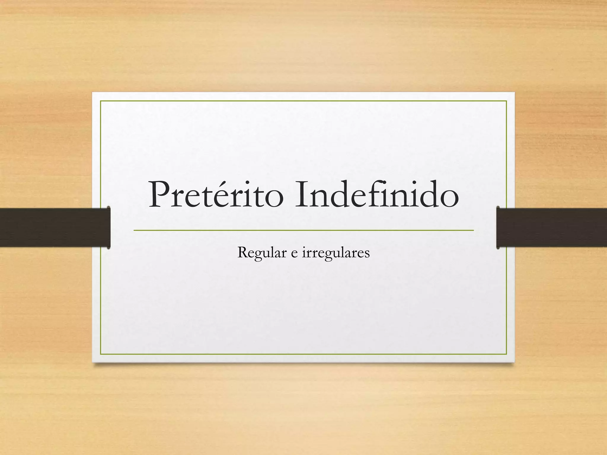 Este documento presenta la conjugación del pretérito indefinido para verbos regulares e irregulares en español. Explica las terminaciones para las tres conjugaciones regulares -ar, -er, -ir y proporciona ejemplos. Luego, detalla las raíces irregulares más comunes y cómo se forman los verbos irregulares en la segunda persona de cortesía y tercera persona. Finalmente, indica que el pretérito indefinido se usa para hablar de acciones pasadas en momentos específicos del pasado y proporciona marcadores