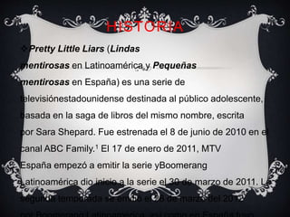 La serie Pretty Little Liars sigue la historia de cuatro amigas (Spencer, Hanna, Aria y Emily) cuyas vidas cambian drásticamente después de la desaparición de su líder y mejor amiga Alison. Un año después, empiezan a recibir mensajes amenazantes de alguien que se hace llamar "A" que parece saber todos sus secretos. La serie explora los misterios que rodean la desaparición de Alison y las amenazas de "A" mientras las chicas intentan vivir sus vidas adolescentes en medio del caos