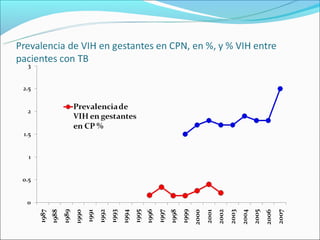 El documento describe la tuberculosis, una enfermedad infecciosa causada por el bacilo de Koch que se transmite por vía aérea. Afecta aproximadamente a 120 personas por cada 100,000 habitantes en Perú. Tiene una larga historia documentada y fue identificada como una enfermedad bacteriana en 1882. Representa un importante problema de salud pública en el país.