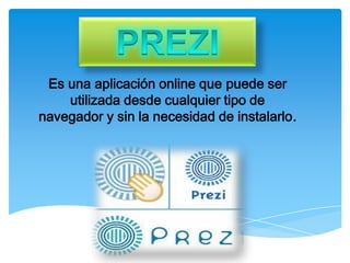 Este documento describe una aplicación en línea para crear presentaciones que puede usarse desde cualquier navegador sin necesidad de instalación, permitiendo agregar imágenes, videos y texto y controlar el orden en que se muestra la información a través de zoom, giros y movimientos de cámara para darle un estilo más dinámico con el objetivo de lograr un mayor impacto visual que las presentaciones de programas tradicionales.