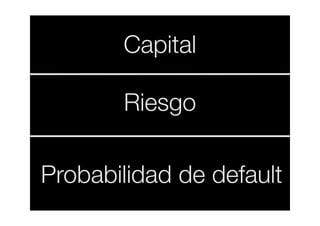 El documento habla sobre el pricing de productos financieros en función del riesgo de crédito del cliente. Explica que los precios, como las tasas de interés de las tarjetas de crédito, serán más altas que los de productos como las hipotecas debido al mayor riesgo. Luego usa ejemplos de diferentes escenarios de riesgo crediticio y tasas de interés para ilustrar cómo afecta el riesgo al rendimiento y capital de un banco. Finalmente, introduce conceptos como el capital económico, RAROC y SVA que