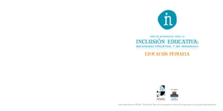 Este documento presenta una guía de materiales educativos para promover la inclusión de estudiantes con discapacidad intelectual o del desarrollo en las escuelas primarias. La guía fue elaborada por FEVAS, una federación vasca de asociaciones a favor de personas con discapacidad intelectual. Incluye información sobre discapacidad intelectual y autismo, así como actividades para diferentes edades escolares con el objetivo de educar sobre la diversidad y promover valores de respeto e inclusión.