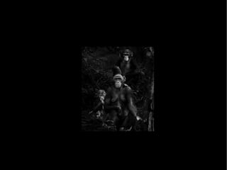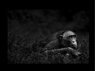 La presentación habla sobre los derechos básicos que deberían tener los grandes simios como los chimpancés, gorilas y orangutanes, incluyendo el derecho a la vida, la libertad individual y la prohibición de la tortura. Argumenta que estos animales forman parte de una comunidad de iguales con los humanos y que sus derechos deberían ser garantizados y protegidos por leyes que velen por su cumplimiento.