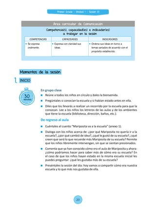 1) Los niños comparten objetos y recuerdos de su escuela inicial mientras el docente les lee un cuento.