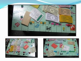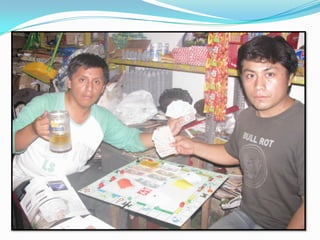 Este documento resume una partida de Monopolio jugada entre dos estudiantes, Luis Antonio y Luis Paul, como parte de un curso. Bebieron cerveza durante el juego. Luis Antonio terminó ganando más propiedades y dinero que Luis Paul, posiblemente debido a que la cerveza afectó más a Luis Paul. El documento concluye recomendando saber con quién beber cerveza y mantener la lucidez al realizar negocios.