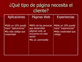 El documento proporciona orientación sobre cómo definir los requisitos para un proyecto web, incluyendo identificar el propósito, audiencia y contenido del sitio para garantizar que sea relevante y accesible para todos los usuarios. También recomienda considerar factores como la tecnología del usuario, proporcionar subtítulos y descripciones, y asegurar la accesibilidad general del contenido.