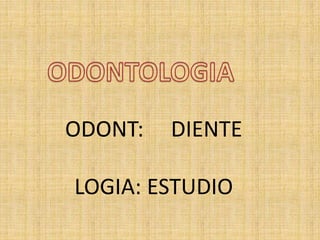 La odontología es la rama de la medicina que se encarga de prevenir, diagnosticar y tratar las enfermedades de la cavidad oral y reparar daños en los dientes y tejidos circundantes. Es una profesión que requiere mantenerse actualizado debido a los constantes avances científicos y también permite expresar la sensibilidad humana a través de la estética dental. Existen diversas especialidades en odontología como endodoncia, periodoncia, ortodoncia, entre otras.