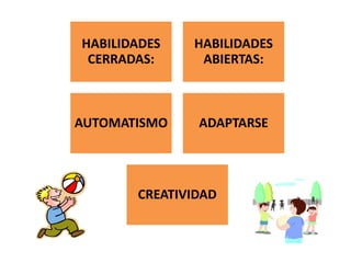 El documento habla sobre la relación entre las actividades motrices y el aprendizaje escolar, argumentando que el fracaso escolar puede deberse a deficiencias motrices. Señala que es importante desarrollar las habilidades motoras de los niños para ayudarlos a concentrarse, prestar atención y mejorar su rendimiento académico.
