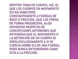 La primera ley de Newton establece que un cuerpo permanecerá en reposo o en movimiento rectilíneo uniforme a menos que actúe sobre él una fuerza neta. Según esta ley, un objeto no cambiará su estado de movimiento a menos que se aplique una fuerza, y un objeto en movimiento no se detendrá por sí solo si no hay fuerzas que actúen sobre él. Esta ley define los sistemas de referencia inerciales, desde los cuales se observa que un cuerpo sobre el que no actúa ninguna fuerza neta se mue