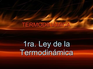 La primera ley de la termodinámica establece que la energía no se crea ni destruye, solo se transforma. El cambio en la energía interna de un sistema es igual al calor neto absorbido menos el trabajo realizado. Existen diferentes tipos de procesos termodinámicos como procesos isobáricos, isotérmicos, isocóricos y adiabáticos que implican cambios en la presión, volumen, temperatura y transferencia de calor.