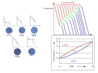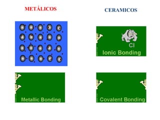 Este documento trata sobre los temas de metalurgia, metalografía, propiedades y usos de los metales y aleaciones metálicas. Explica que las aleaciones se forman por la mezcla de dos o más metales que dan como resultado un compuesto con características diferentes a los metales originales. También resume las propiedades de los metales puros y aleaciones y sus aplicaciones comunes en odontología, incluyendo restauraciones, prótesis y implantes dentales.