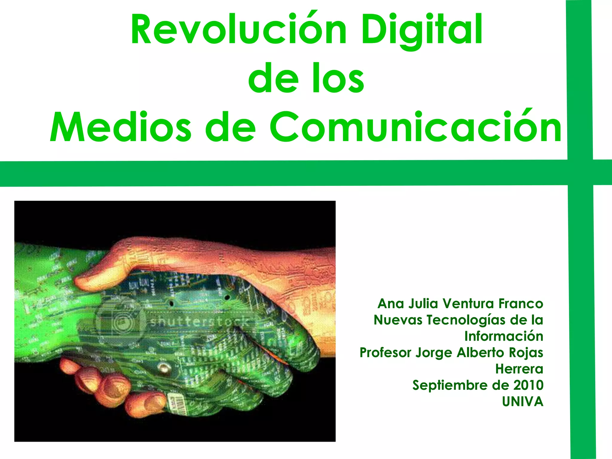 El documento describe la evolución de la televisión desde su invención hasta la actualidad. Comenzó en 1927 con emisiones mecánicas en Inglaterra. En la década de 1950 se convirtió en el principal medio de comunicación con programación regular. Desde entonces ha habido múltiples cambios tecnológicos como la llegada del color, los controles remotos, las pantallas de plasma y LCD, la televisión 3D y la transmisión digital. Hoy en día la televisión sigue siendo el principal entretenimiento en los hogares a nivel