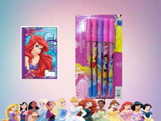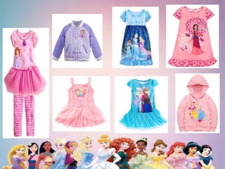 Este documento analiza los estereotipos de género presentados en las princesas Disney a lo largo de los años y su influencia en las niñas. Explora cómo aunque los papeles femeninos han cambiado para ser más dominantes, todavía necesitan a sus príncipes. También critica cómo las princesas Disney promueven la belleza, la delicadeza y la espera del príncipe azul, lo que influye en los juguetes y productos dirigidos a niñas.