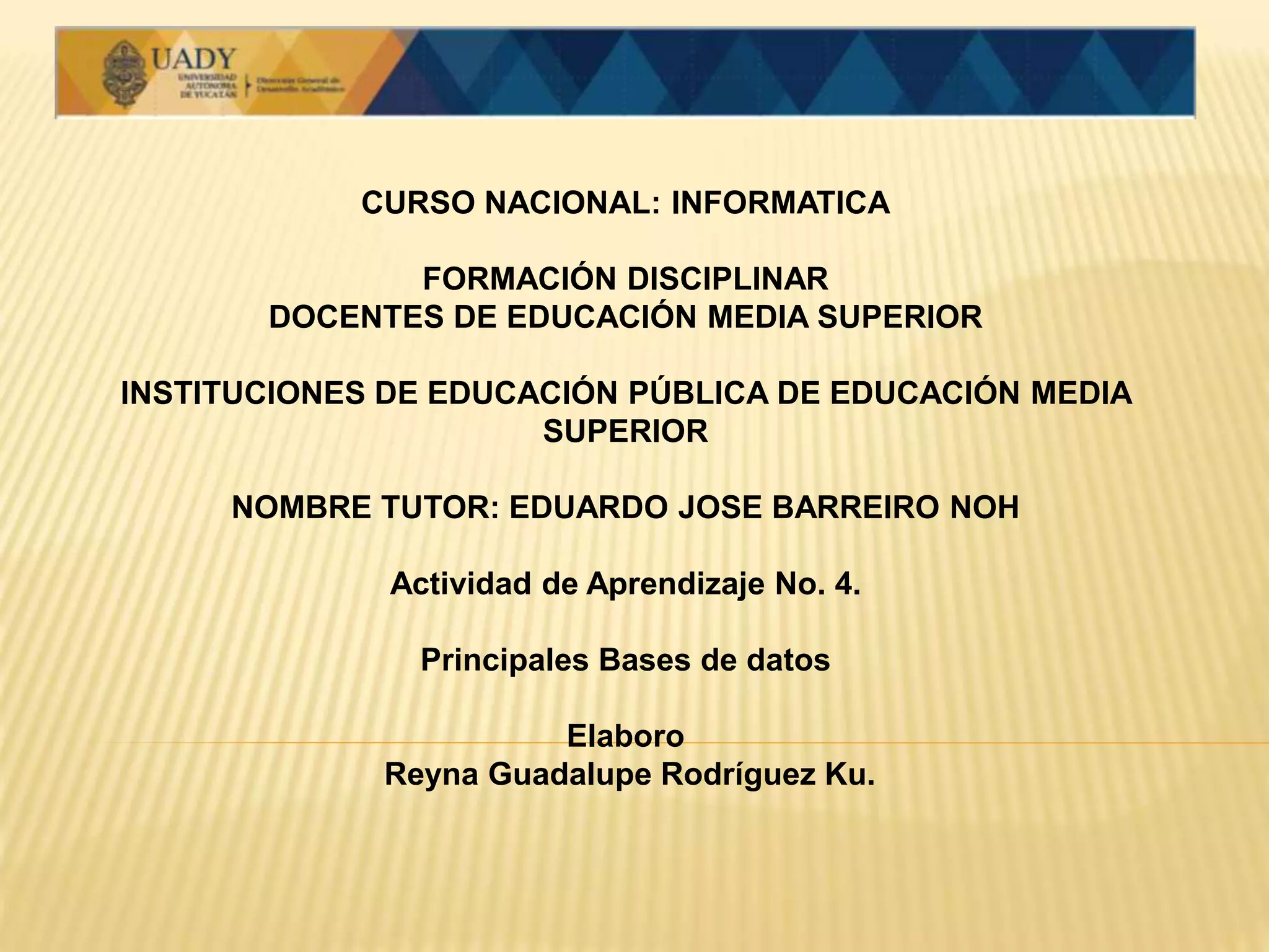 Una base de datos es un sistema informático para almacenar grandes volúmenes de información. Existen bases de datos SQL y NoSQL, donde SQL usa lenguaje de consultas SQL y estructuras fijas como tablas, mientras que NoSQL no requiere estructuras fijas y no garantiza completamente ACID. Algunas de las bases de datos más populares son SQL Server, Oracle, MongoDB, Oracle NoSQL y Cassandra.