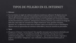 EN LA PAGINA SE ENCUENTRA LOS DIFERENTES TIPOS DE PELIGRO QUE SE ENCUENTRAN EN EL INTERNET