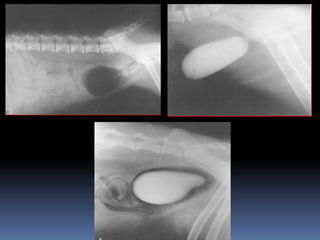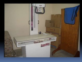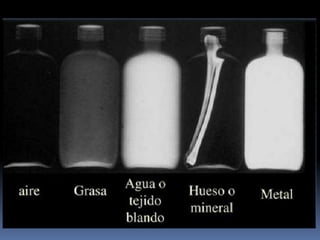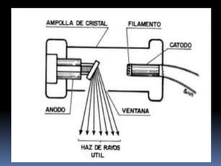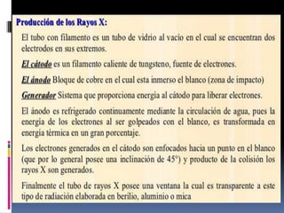El documento habla sobre la imagnología veterinaria, específicamente sobre la radiología. Explica que la radiología usa rayos X para generar imágenes del interior de un organismo con fines de diagnóstico. Detalla la historia de los rayos X, sus propiedades, efectos biológicos y medidas de protección. También describe cómo se forma la imagen radiográfica y factores como el kilovoltaje y el miliamperaje. Finalmente, menciona signos radiográficos y el uso de medios de contraste.