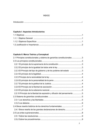 El documento presenta un análisis detallado de los principios constitucionales y derechos fundamentales de la República Dominicana, destacando su importancia para el funcionamiento del Estado. Se discuten aspectos clave como la supremacía de la constitución, la igualdad ante la ley y el sistema de garantías constitucionales. Además, se explora la evolución histórica de los derechos humanos y su protección a nivel nacional e internacional.