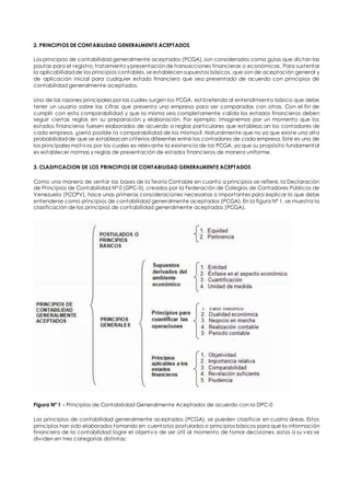 Este documento presenta una introducción a los principios contables y define los principios de contabilidad generalmente aceptados (PCGA). Explica que los PCGA establecen las normas y reglas para la presentación uniforme de los estados financieros y se clasifican en postulados básicos, principios generales, principios derivados del ambiente económico y principios aplicables a los estados financieros. Luego describe algunos principios específicos como el de equidad, pertinencia, entidad, énfasis en el aspecto económico, cuantific
