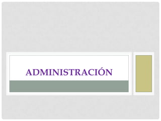 Este documento describe los conceptos fundamentales de la administración. Define la administración como el proceso mediante el cual una empresa organiza y ejecuta sus actividades de manera planificada para lograr sus objetivos de manera efectiva. Señala que la administración es aplicable a diferentes tipos y tamaños de organizaciones e identifica tres recursos clave: recursos humanos, materiales y técnicos. Además, destaca algunas funciones importantes de la administración como la dirección, planeación, organización, coordinación y control.