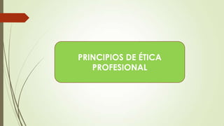 Este documento presenta los principios de ética profesional para la carrera de Educación Inicial. Explica que la ética profesional se basa en la naturaleza racional del hombre y su capacidad de distinguir el bien del mal. Luego describe cuatro principios clave de la ética profesional: autonomía, paternalismo, beneficencia y no maleficencia, y justicia distributiva. Finalmente, ofrece una breve definición de cada uno de estos principios.