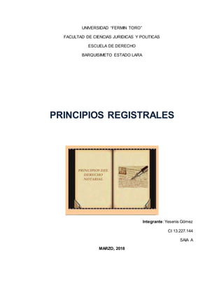 1) El principio de inscripción, que formaliza los actos jurídicos de los particulares a través de su transcripción en los libros del registro público.