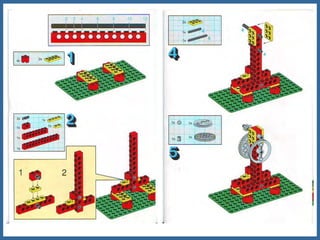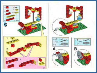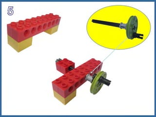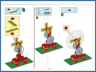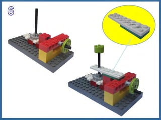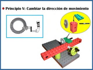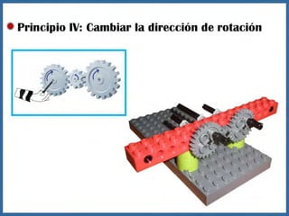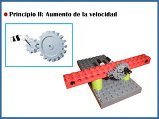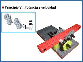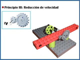 Este documento proporciona información sobre máquinas simples como palancas, ruedas y ejes, y engranajes. Explica las tres clases de palancas, los principios de cómo funcionan las ruedas y los ejes, y los seis principios de cómo funcionan los engranajes, incluido cómo pueden usarse para cambiar la velocidad, la dirección del movimiento y la potencia. El documento tiene un enfoque educativo y está destinado a ayudar a los estudiantes a comprender conceptos básicos de ingeniería mecánica.