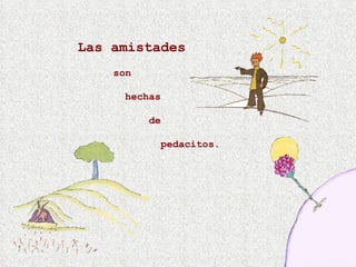 Este documento describe cómo las amistades están hechas de pequeños momentos compartidos de calidad más que de la cantidad de tiempo pasado juntos. Explica que diferentes tipos de amistades pueden formarse a través de risas, tristezas compartidas, la escuela u otras actividades, e incluso a través de correos electrónicos a distancia. Concluye diciendo que los recuerdos de esos momentos preciosos con amigos son lo que los hace tan importantes.