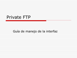 PrivateFTP permite acceder a archivos a través de FTP utilizando software cliente y servidor. Para configurar el servidor PrivateFTP hay que arrancar el servicio y establecer la configuración. Una vez en funcionamiento, se puede monitorizar el servidor. Los usuarios pueden acceder al sitio FTP mediante el cliente de PrivateFTP.