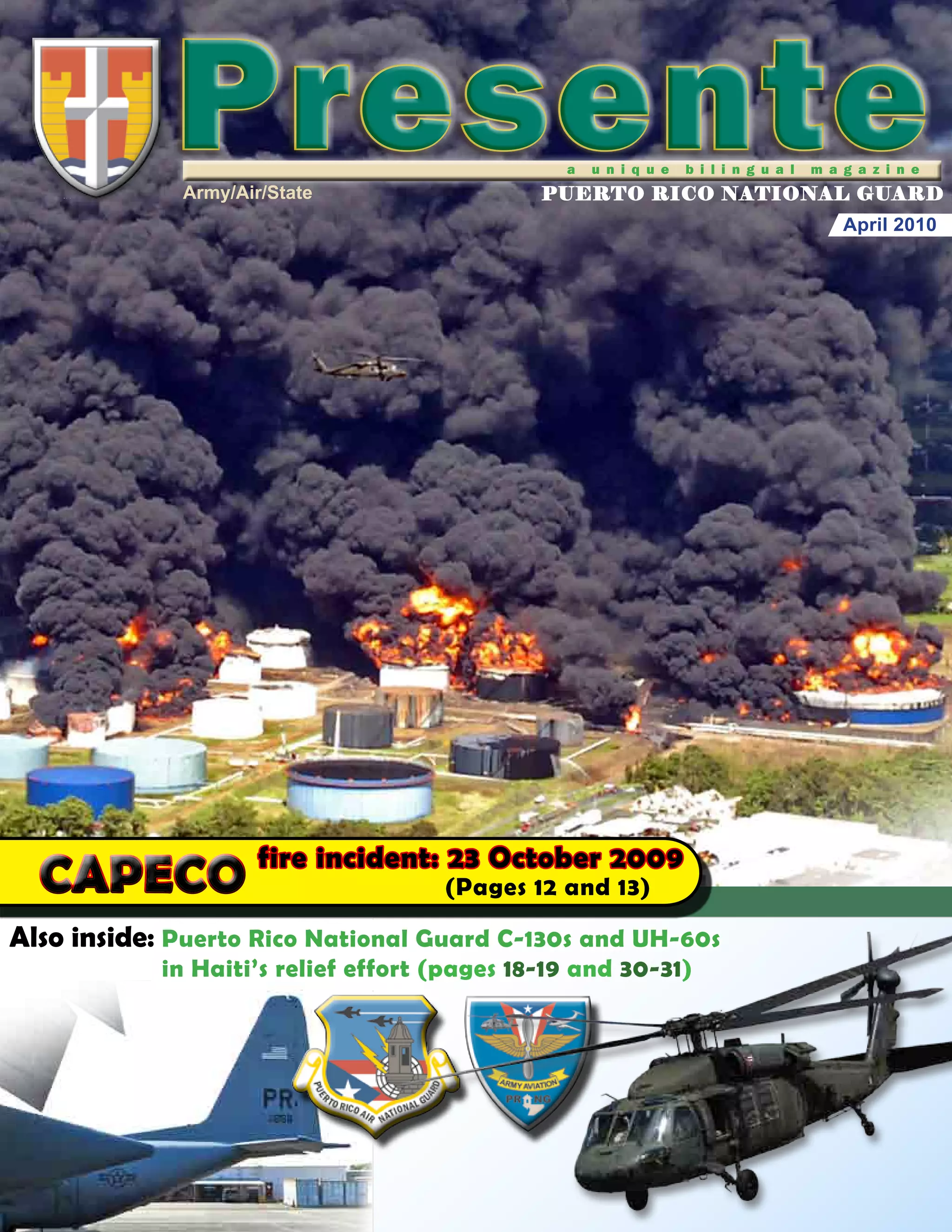 El documento resume las actividades recientes de la Guardia Nacional de Puerto Rico. La Guardia Nacional ha estado apoyando los esfuerzos de ayuda en Haití después del terremoto de enero de 2010 usando sus helicópteros y aviones C-130. También se han activado para apoyar a la policía en Puerto Rico en la "Operación Seguridad Compartida" para ayudar a reducir la criminalidad. Adicionalmente, la Guardia Nacional ha estado entrenando fuerzas de seguridad en Uganda a través de un programa contra el terrorismo en África.