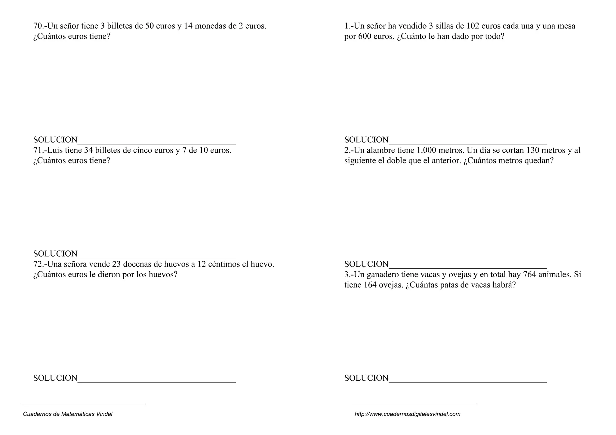 El documento presenta un cuaderno de matemáticas para alumnos que incluye temas como numeración, cálculo, fracciones, potencias, ecuaciones, sistemas de ecuaciones, cálculo mental, sistema métrico, perímetros y superficies, gráficos y una serie de problemas de matemáticas con sus soluciones.