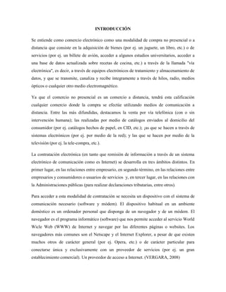 Este documento discute los problemas asociados con el comercio electrónico, incluyendo riesgos para los consumidores como la calidad o entrega inesperada de productos, y problemas de seguridad como el robo de información financiera. También cubre la necesidad de proteger datos personales y usar encriptación para realizar transacciones de forma segura. El autor concluye que el comercio electrónico facilita las compras a distancia pero requiere precauciones para evitar problemas entre las partes involucradas.
