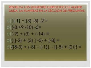 e){[8-3) + (-8) – (-1)] – [(-5) + (2)]} =](https://image.slidesharecdn.com/problemaspropuestossustraccion-140721091111-phpapp02/85/Problemas-propuestos-sustraccion-2-320.jpg)