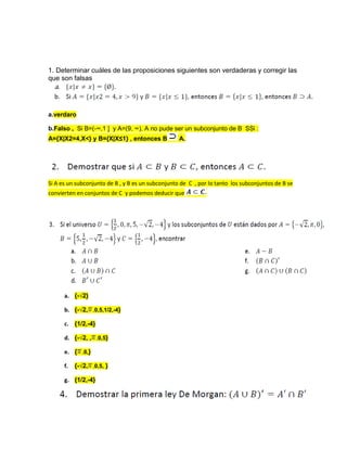 1. El documento presenta un problema de probabilidad y estadística sobre subconjuntos, conjuntos y probabilidades. 2. Incluye ejercicios sobre diagramas de árbol, combinatorias, probabilidades con cartas y dados. 3. También presenta problemas para investigar sobre conjuntos y sus operaciones.