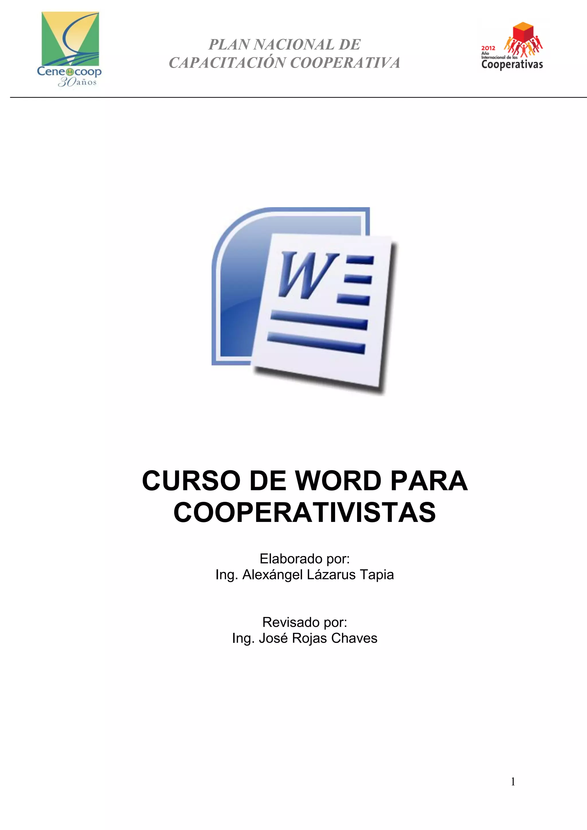 Este documento presenta un curso sobre el uso de Microsoft Word para cooperativistas. Explica cómo identificar la ventana de Word y utilizar sus diferentes elementos. Luego, enseña a formattear el texto usando opciones de fuente, párrafo, viñetas, numeración, bordes, sombreado y márgenes. También cubre herramientas de corrección, búsqueda e inserción de objetos como imágenes, formas y wordart. Por último, explica cómo imprimir documentos configurando márgenes y tamaño de papel. El objetivo general es
