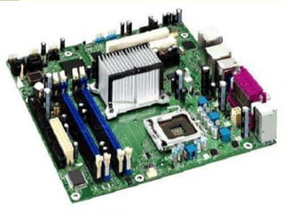 La tarjeta madre es el componente más importante de una computadora. Contiene conectores para dispositivos externos, ranuras PCI para tarjetas de expansión, un zócalo para el procesador CPU, puertos como AGP para la tarjeta de video e IDE para discos, bancos de memoria RAM, la BIOS y un conector para la fuente de poder. Cada parte juega un rol vital en el funcionamiento del equipo.