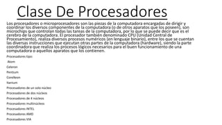 Clase De ProcesadoresLosprocesadores o microprocesadores son las piezas de la computadora encargadas de dirigir y