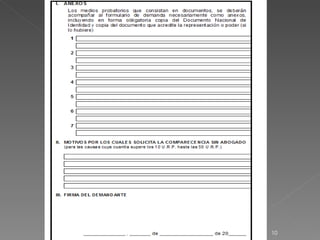 1) La demanda se presenta por escrito y debe cumplir con los requisitos establecidos, sin incluir pliegos dirigidos a la contraparte.
