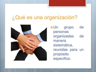 Este documento describe los conceptos básicos de organización, administración y los procesos de la administración. Define una organización como un grupo de personas organizadas sistemáticamente para un propósito específico. Explica que la administración es el proceso de lograr las cosas de manera eficiente y eficaz a través de otras personas. Los procesos de la administración son la planificación, organización, dirección y control. Cada proceso se define brevemente.