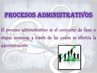 El documento describe las etapas del proceso administrativo de una empresa: 1) Planeación, que incluye establecer la visión, misión, objetivos y estrategias; 2) Organización, que implica diseñar las estructuras y funciones; 3) Integración, que involucra obtener los recursos necesarios; 4) Dirección, ejecutando las etapas mediante el liderazgo y la orientación del personal; 5) Control, estableciendo estándares para evaluar los resultados.
