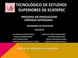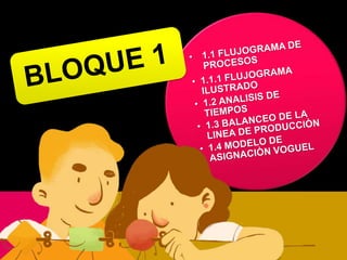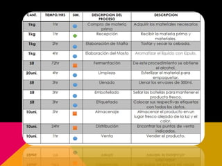 El documento presenta el análisis de proceso de producción de cerveza artesanal de una empresa. Se incluye el flujograma de procesos, ciclos de tiempos por estación, balanceo de línea de producción y modelo de asignación de Vogel. También contiene el análisis de layout identificando las áreas básicas, matriz diagonal, diagrama de red y plano de distribución. Finalmente describe la estructura de partes y materiales requeridos, así como posibles contradicciones y soluciones en el proceso de produ