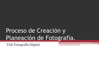 El documento describe las etapas del proceso de preproducción fotográfica, incluyendo la elaboración de un boceto, la investigación de equipo y locaciones, y la planificación de la producción, el presupuesto y el personal. También explica conceptos como el uso de formatos RAW, la iluminación controlada, la importancia de comunicarse claramente con los modelos, y el papel de la escenografía en una sesión de fotos.