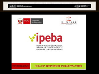 El documento describe el proceso de acreditación educativa en Perú. Consiste en cuatro etapas principales: autoevaluación de la institución educativa, evaluación externa, acreditación y renovación periódica de la acreditación a través de nuevos procesos de autoevaluación y evaluación externa. La acreditación reconoce públicamente las mejoras progresivas en la gestión educativa de una institución para mejorar los resultados estudiantiles.