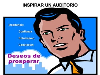 El documento ofrece consejos sobre cómo mejorar la comunicación en público. Explica que es importante conocer al público, estructurar la presentación en introducción, cuerpo y conclusión, y usar un lenguaje sencillo, claro y creíble. También recomienda mostrar emociones genuinas, involucrar al público haciendo preguntas, y practicar la oratoria para superar el miedo escénico.